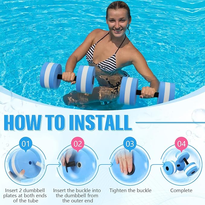 - Improved Water Workout Experience: the exercise and fitness dumbbells provide an overall muscle strengthening during water workouts, a fun addition to pool entertainment; Whether you're an adult, child, elderly person, postpartum pregnant woman, these pool dumbbells offer satisfactory resistance for building muscle endurance, increasing flexibility, and burning more calories, accommodating your needs for rehabilitation, weight loss, or water yoga sessions