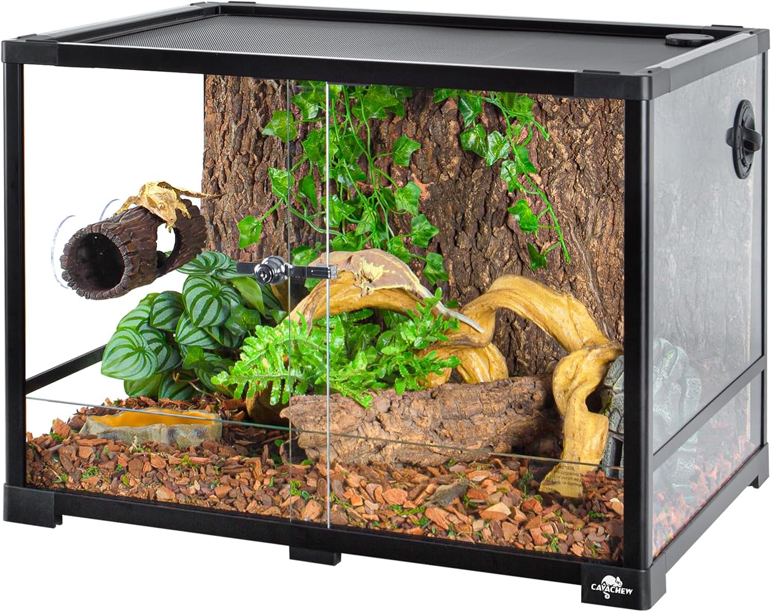 - Great for Reptiles & Amphibian: this small reptile hide is easy to use and clean, robust and safe, Increase the natural atmosphere inside the enclosure, suitable for crested gecko, lizard, snake, leopard geckos, Chameleon, amphibians and more, perfect for adding happy piece to reptiles enclosure, size: 7.8"L x 4.9"W x 2.1"H.