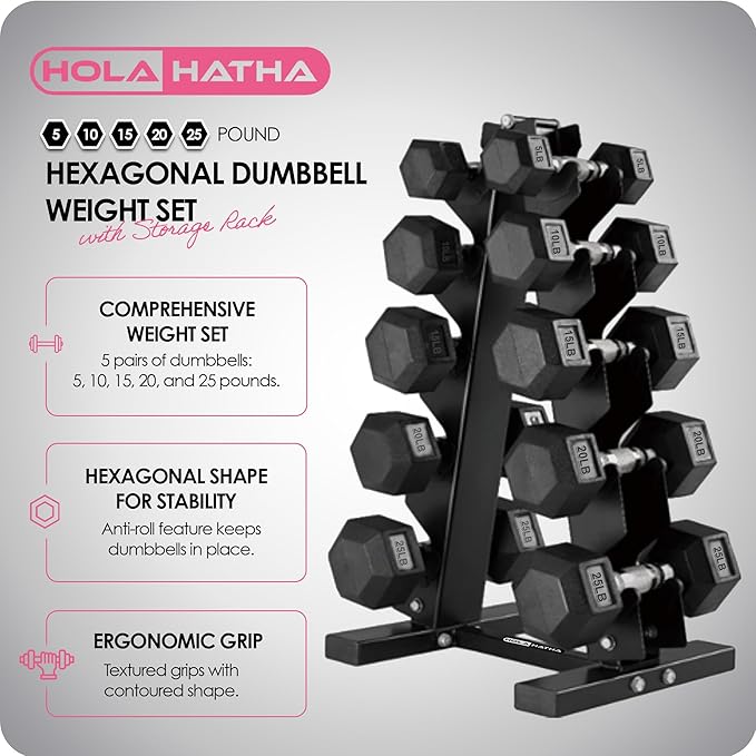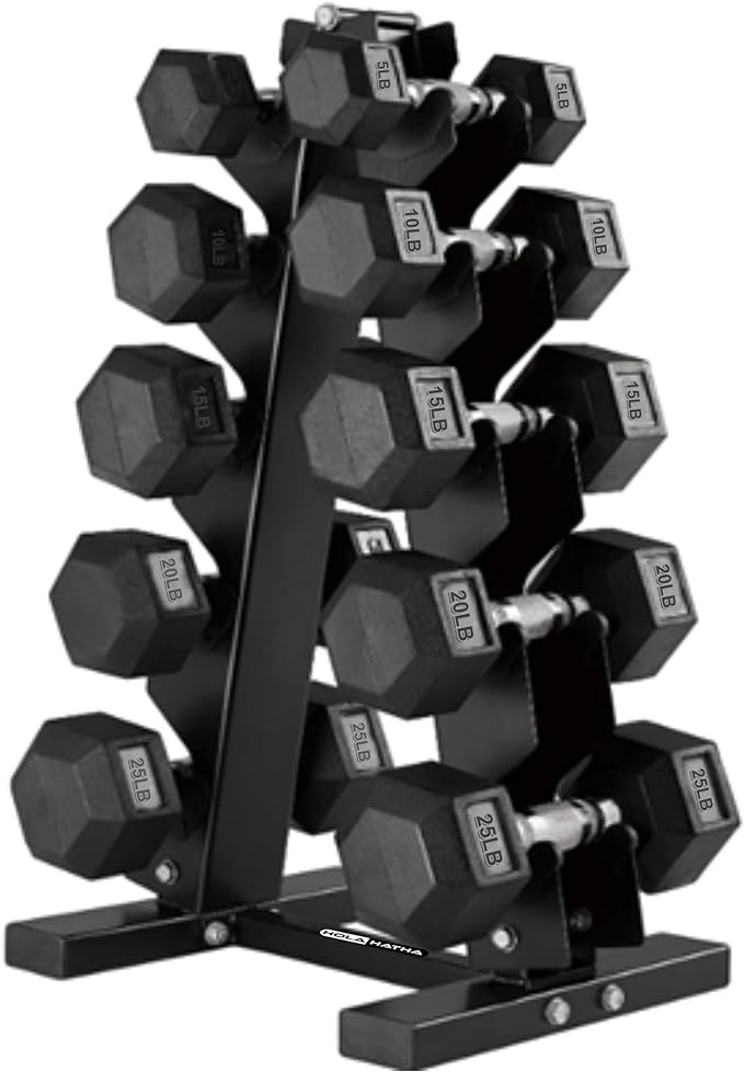 HolaHatha Hexagonal Dumbbell Free Hand Weight Set w/Rack