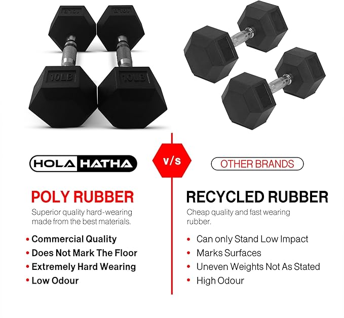 - Durably Made: Crafted from robust poly rubber, these gym weights are built to withstand the impact of rigorous workouts, ensuring longevity and reliable performance