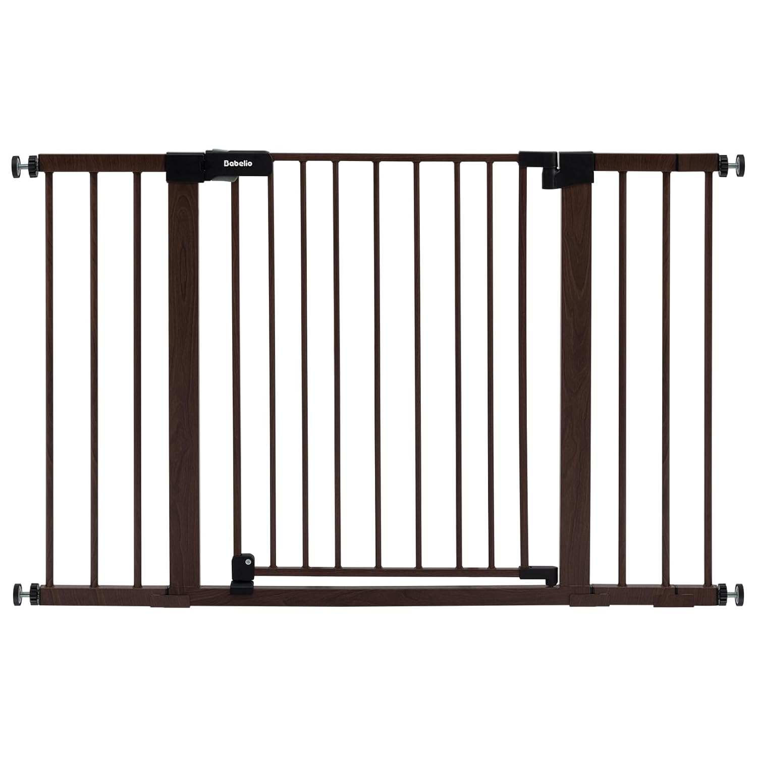 BABELIO Baby Gate with Black Wood Pattern, 29-48 Inch Auto Close Dog Gate for The House, Stairs and Doorways, Pressure Mounted Pet Gate with Door and Y Spindle Rods