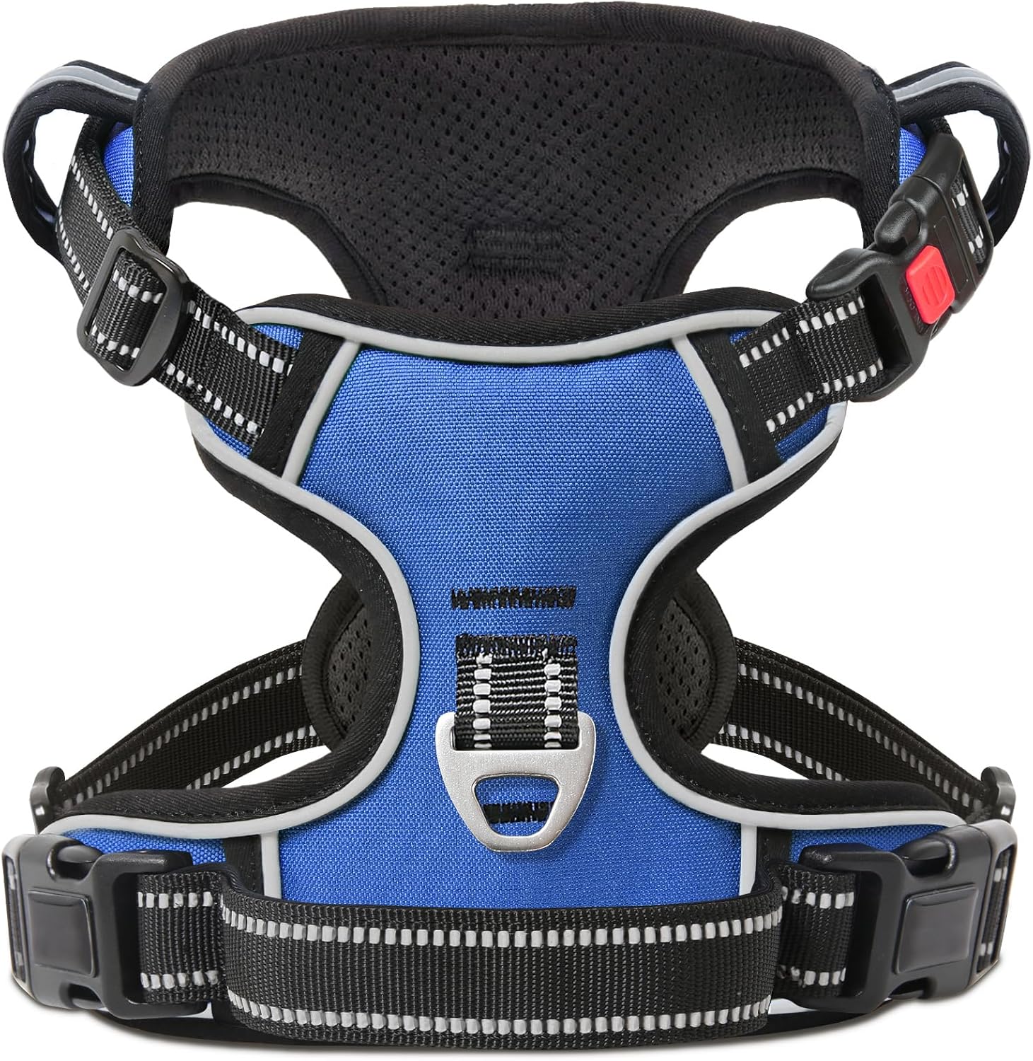 Timos Dog Harness for Large Dogs, No Pull Service Vest with Reflective Strips and Control Handle,No Choke Dog Harness with 2 Metal Rings for Easy Walking,Outdoor Training,Blue, XL