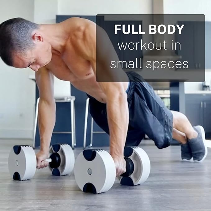 • SMART DESIGN: Traditional adjustable dumbbell length remains fixed even with smaller weights. The adjustable dumbbell's length reduces with lower weight selection, providing you a wider range of arm movement. The vibrant colors with matte finish blends anywhere in your home.