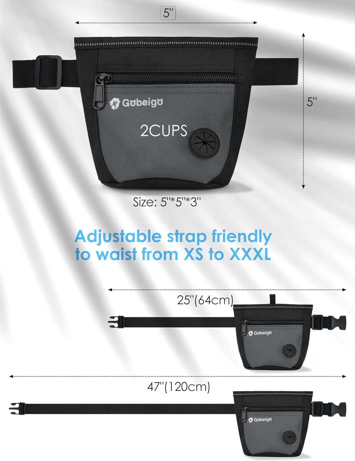 - 【Versatile wearing options】 Gobeigo dog treat bag offers two wearing modes: an adjustable waist belt (25-47 inches) catering to a wide audience, or the option to use the back metal clip independently. Simple and convenient, ensuring a comfortable fit for everyone.
