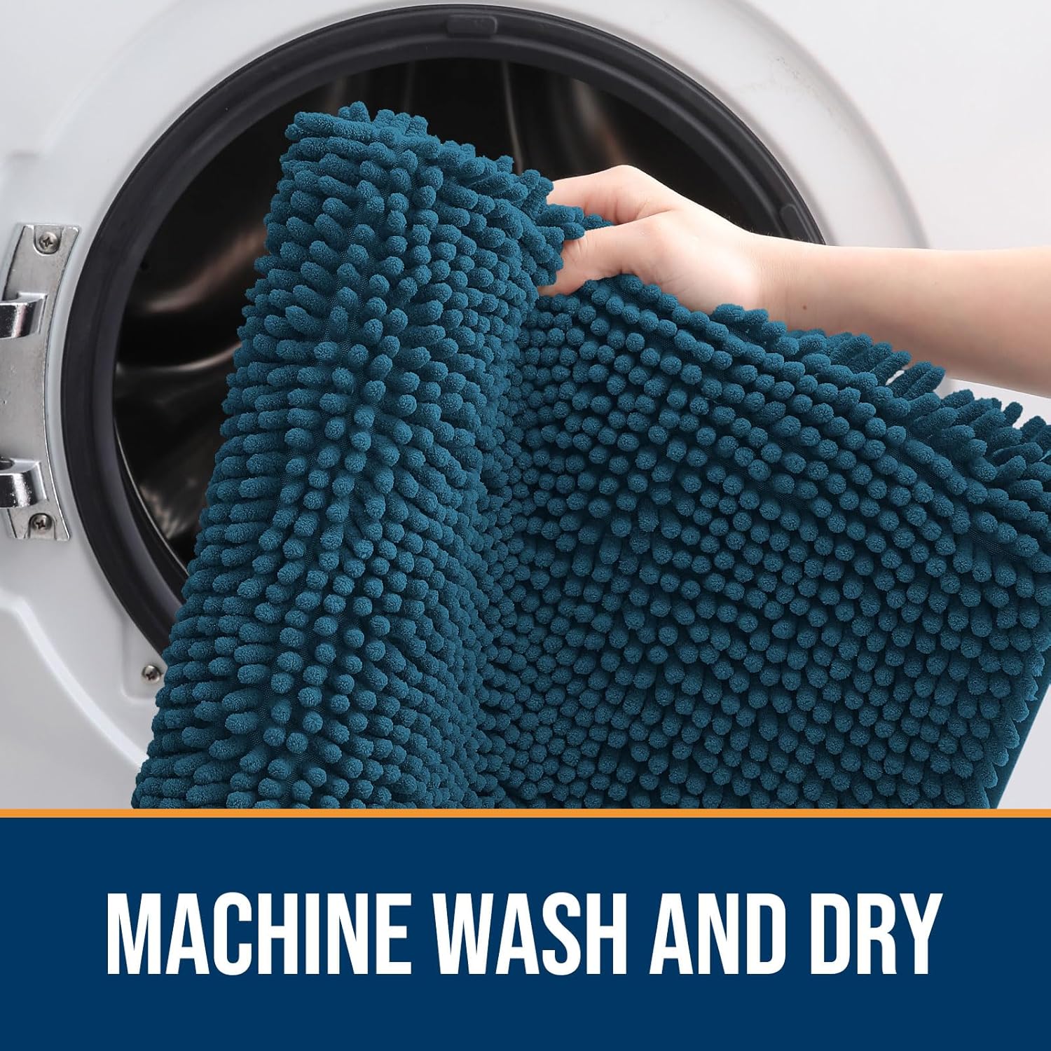 OLANLY Dog Door Mat for Muddy Paws 40x32, Absorbs Moisture and Dirt, Absorbent Non-Slip Washable Doormat, Quick Dry Chenille Mud Mat, Entry Indoor Entryway Carpet for Inside Floor, Atlantic Blue