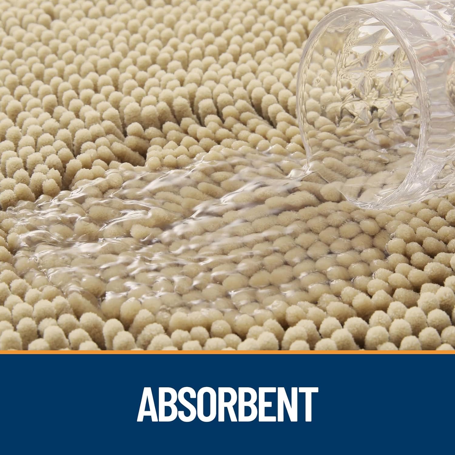 OLANLY Dog Door Mat for Muddy Paws 59x35, Absorbs Moisture and Dirt, Absorbent Non-Slip Washable Doormat, Quick Dry Chenille Mud Mat for Dogs, Entry Indoor Entryway Carpet for Inside Floor, Beige