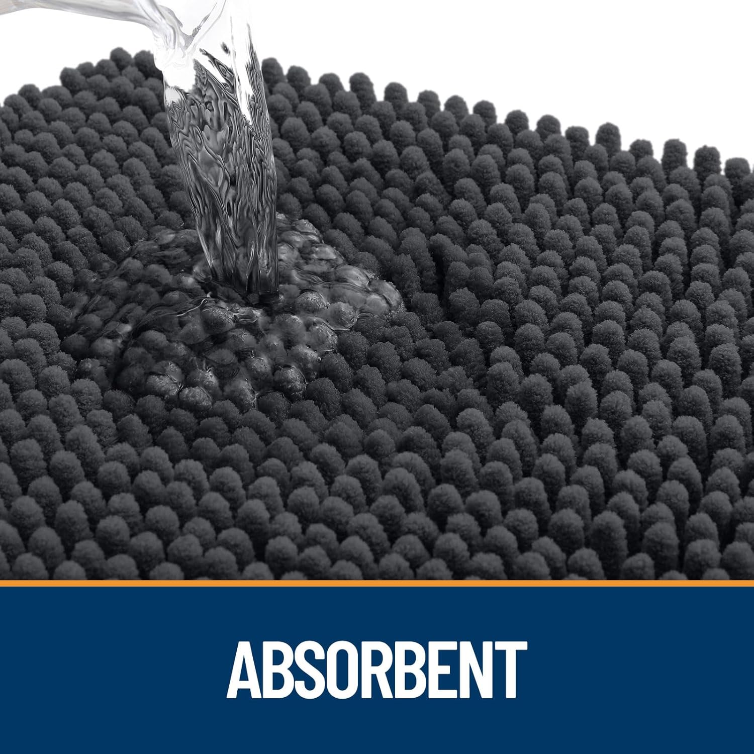 OLANLY Dog Door Mat for Muddy Paws 59x35, Absorbs Moisture and Dirt, Absorbent Non-Slip Washable Doormat, Quick Dry Chenille Mud Mat for Dogs, Entry Indoor Entryway Carpet for Inside Floor, Dark Grey