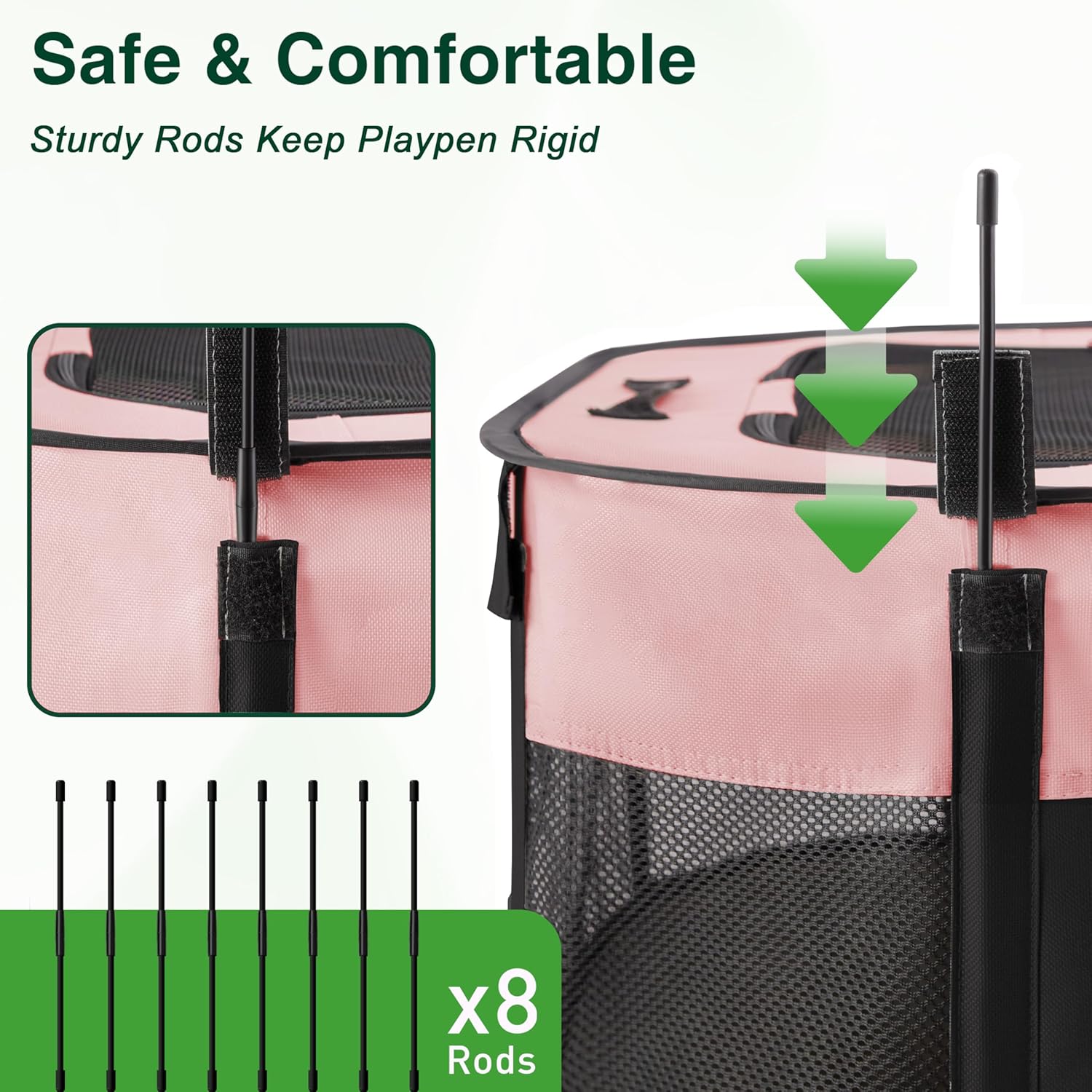 - Easy to Assemble and Store: The Portable Pet Play Pen comes along with a convenient carrying case that can easily store your playpen. Follow the instructions,you can assemble it in just 30 seconds. And it's also easy to fold back flat when not in use. Our lightweight portable pet playpen can be used indoors, outdoors, traveling, camping, etc.
