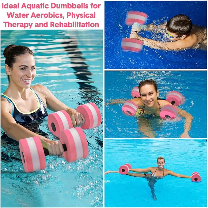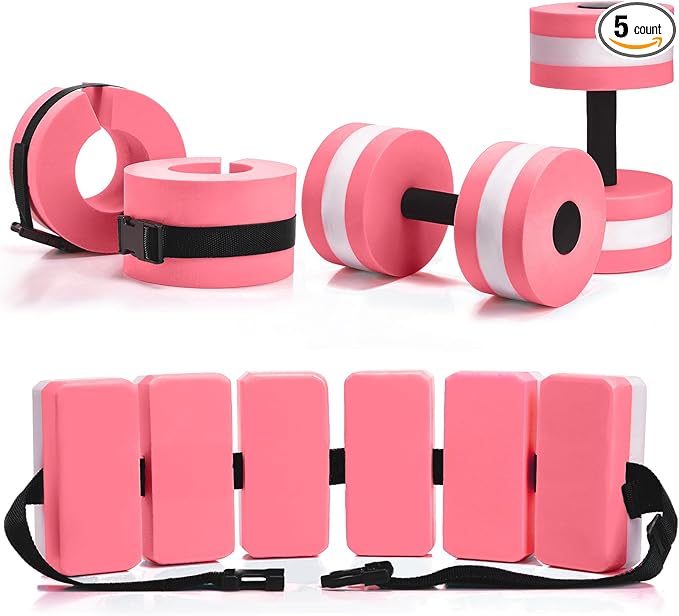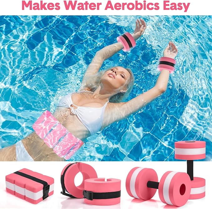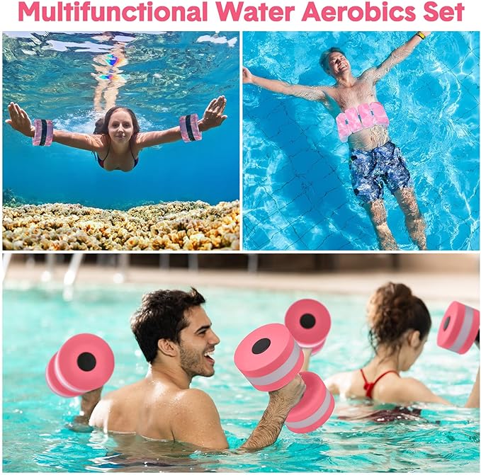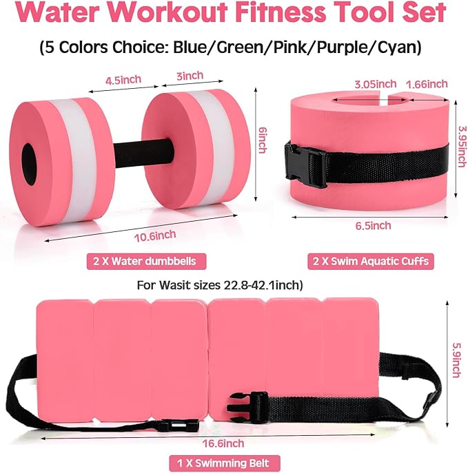 - Complete Package for Water Fitness: this water dumbbell set is a comprehensive package for your water workout regime, including 2 foam swim aquatic cuffs, 2 lightweight aquatic exercise dumbbells, and 1 swim belt, which ensures a full body workout, improving your overall fitness