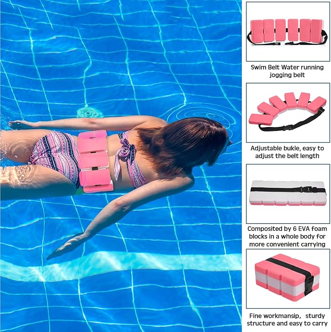 - Practical Swim Belt: the water weights equipment consists of 6 EVA foam blocks, sized at around 16.6 x 5.9 x 1.85 inches, suitable for waist sizes from about 22.8" to 42.1"; The swimming belt comes with a durable adjustable shoulder strap and buckle that can be fixed at the waist for easy adjustment; Provides you with flotation assistance while in the water, ideal for non swimmers or beginner swimmers who need support