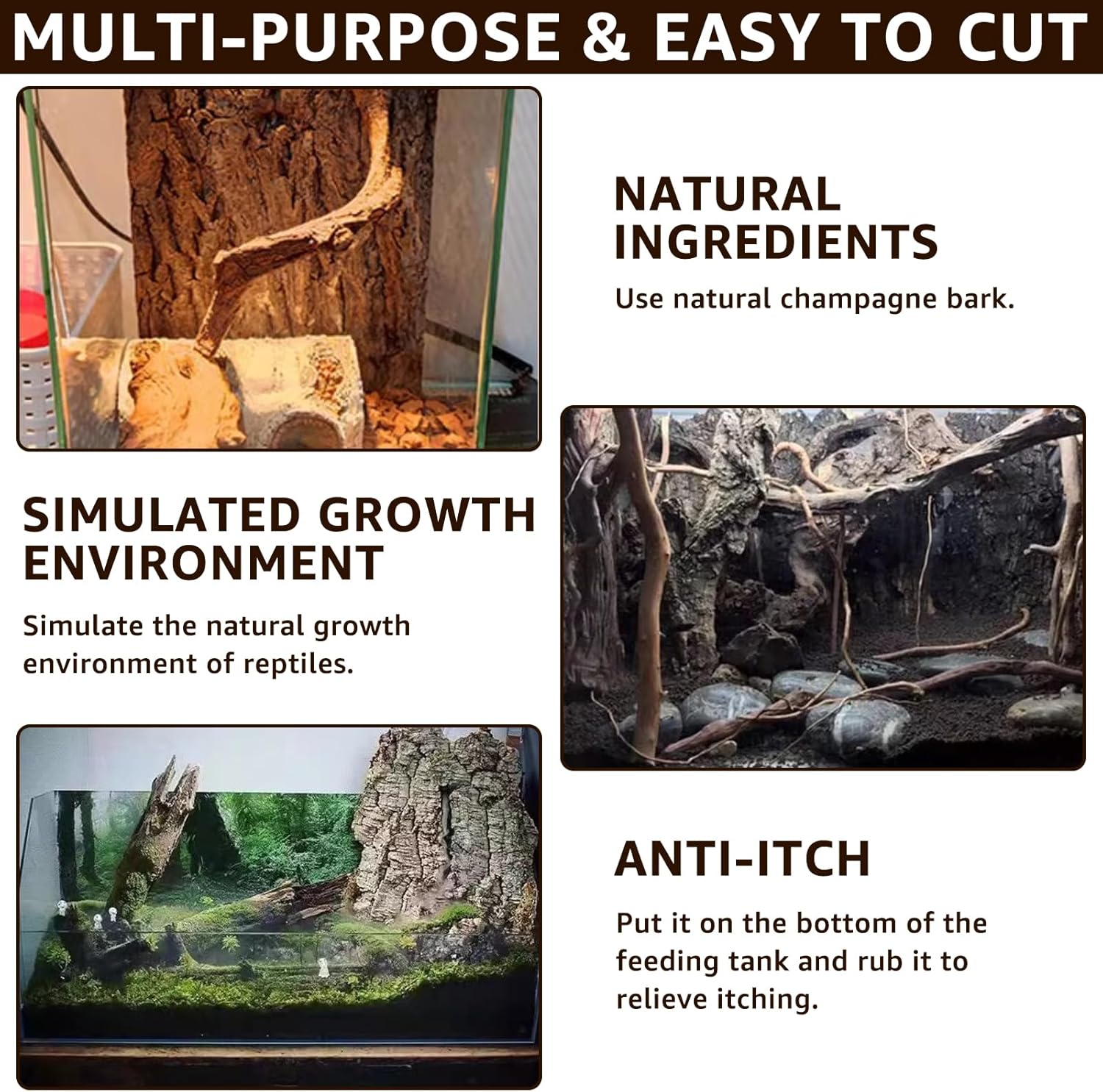 - EASY CUSTOMIZATION: Our reptile cork bark is easy to use. It can be easily cut to any desired size, allowing you to customize it to your specific tank requirements. This flexibility ensures that it fits perfectly into different crawler tanks and enhances the overall aesthetic appeal of the glass aquarium.