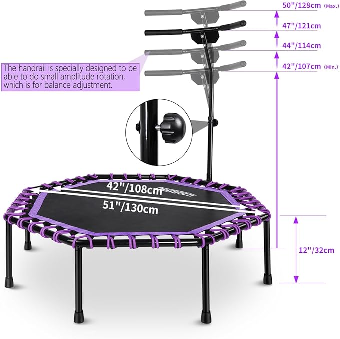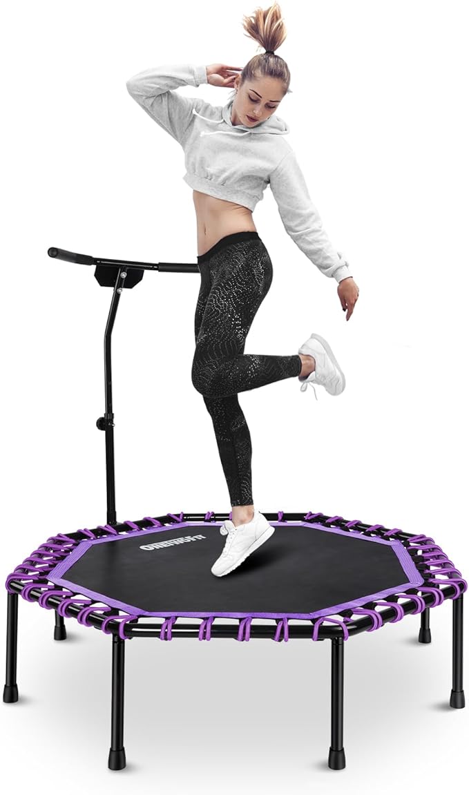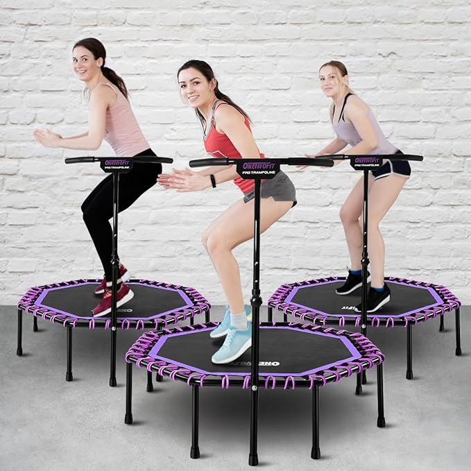 ONETWOFIT 51" Silent Trampoline with Adjustable Handle Bar, Fitness Trampoline Bungee Rebounder Jumping Cardio Trainer Workout for Adults…