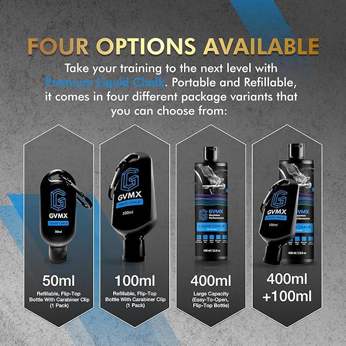 50ML/100ML/400ML Superior Grip Premium Liquid Chalk. Long Lasting Mess-Free Gym Chalk for Weightlifting, Gymnastics, Climbing. Fast Drying Refillable Gym Accessories. Package May Vary.