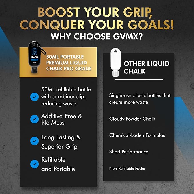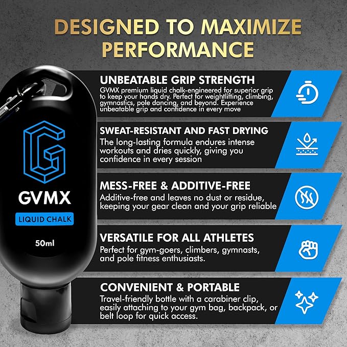 - ๐๐ฑ๐ฑ๐ถ๐๐ถ๐๐ฒ-๐๐ฟ๐ฒ๐ฒ ๐๐ถ๐๐ต ๐ก๐ผ ๐ฅ๐ฒ๐๐ถ๐ฑ๐๐ฒ: GVMX hand chalk is no ordinary chalk powder. Nor is our workout chalk anything like other brands of liquid chalk gym enthusiasts use. Besides being additive-free, it leaves no chalk marks on your phone or sport equipment.