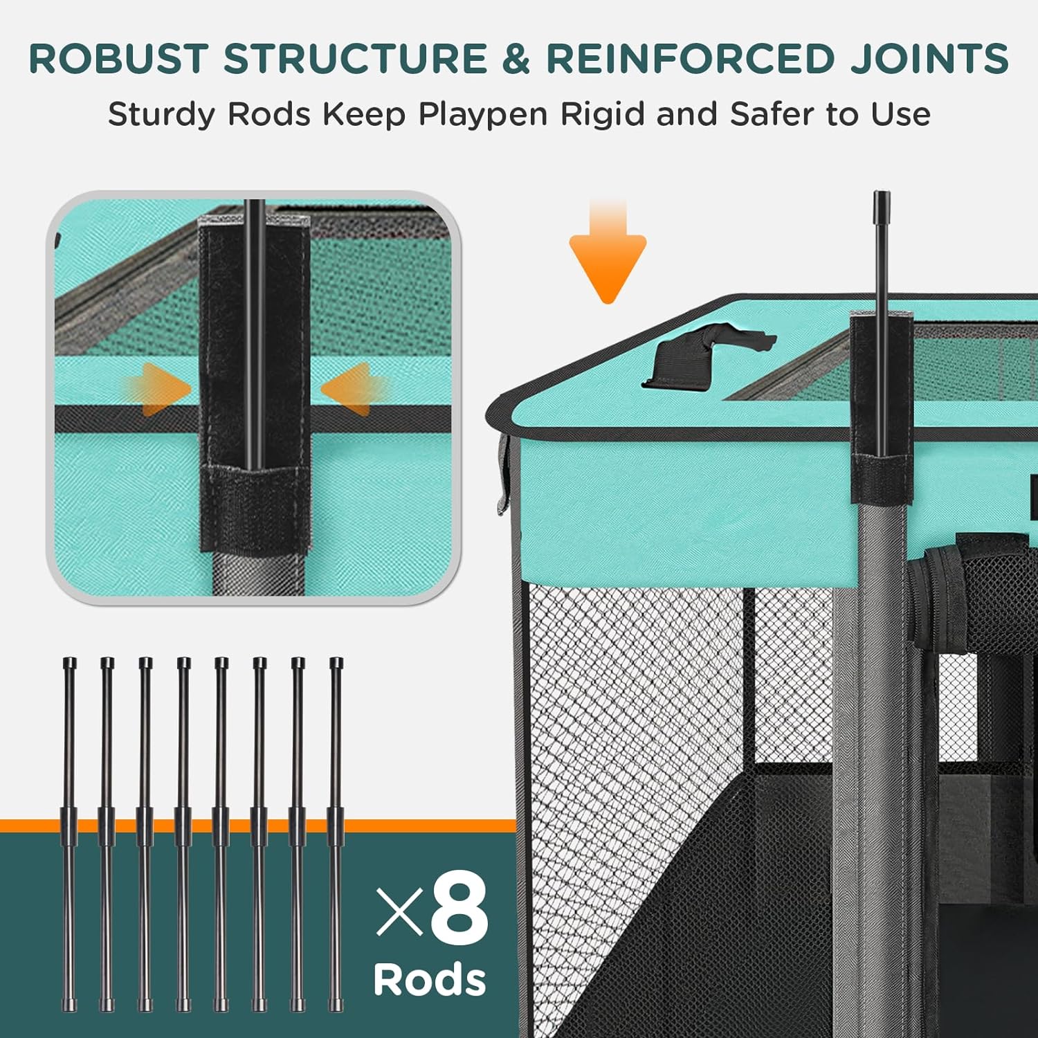 - Portable Design: Assembly can be completed in 3 minutes by unfolding the portable pet playpen and inserting the support rods. (You can check our video or user manual for specific installation and folding methods.)Portable dog cat playpen can be folded when not in use, suitable for indoor, outdoor, travel, camping, and more.
