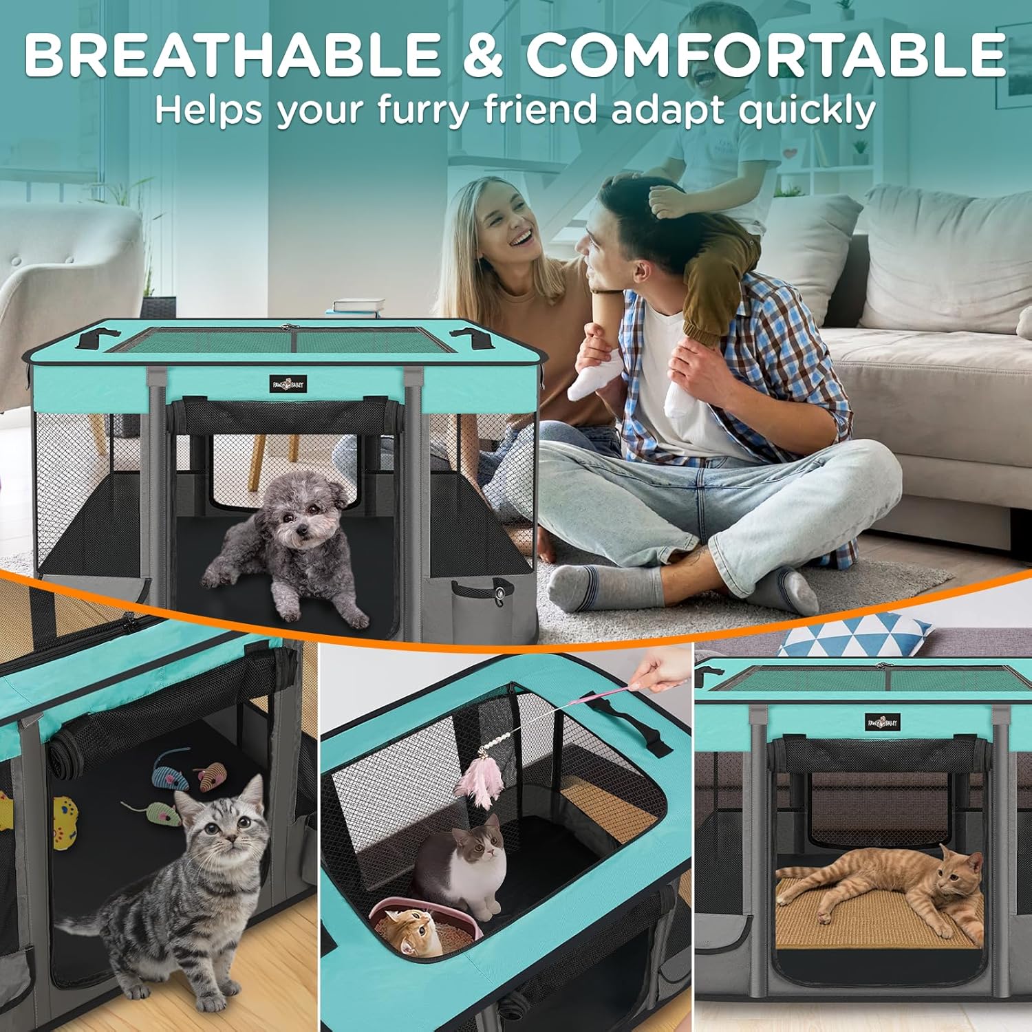 Foldable Pet Kitten Playpen, Waterproof Portable Pet Cat Dog Playpen Kennel Tent for Small Dog Cat, Removable Shade Cover, Come with Free Carrying Case, Indoor Outdoor Use for Small Animals, BlackTeal