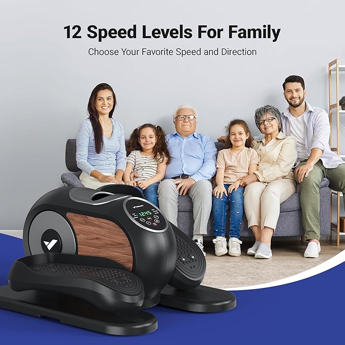 - 【AUTO and MANUAL MODES】MERACH under desk elliptical machine has Manual (12-level speed) & Auto (P1-P12) for your choice. Suitable for the whole family.