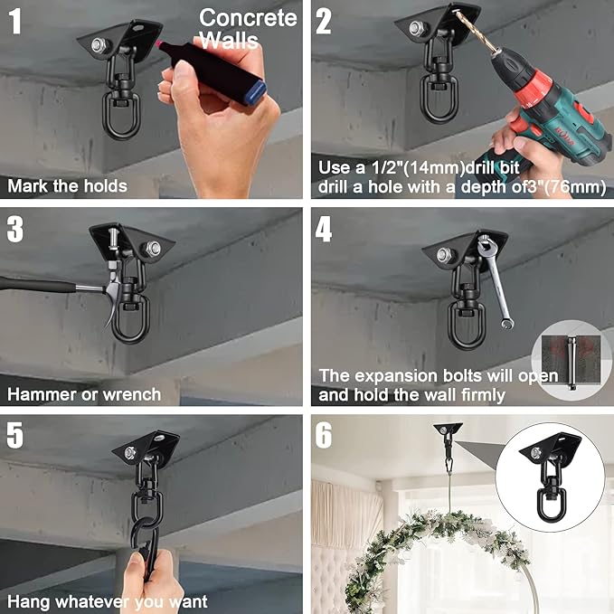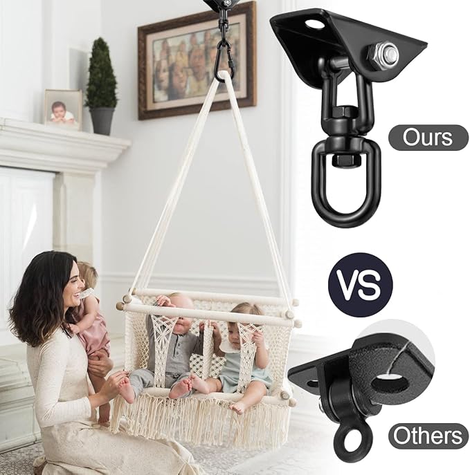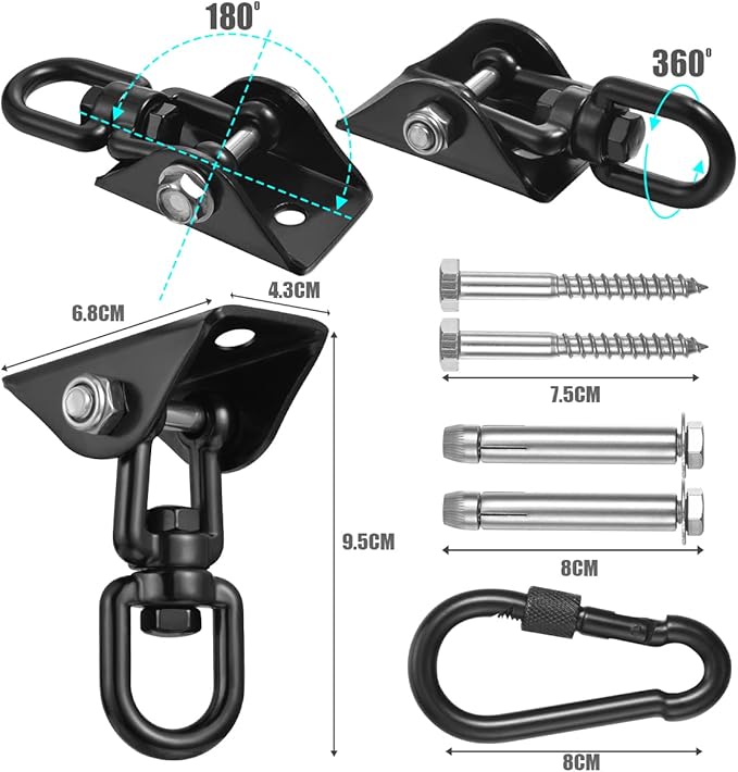 - 360-Degree Rotation : The hammock hanging kit rotating hook can be rotated all-around without any tangles or distortion, so you can swing your hammock freely to relax or have fun. It prevents tangles or twists. Innovative design ensures wider and more flexible use.Porch swing hanging kit,hammock chair hanging kit,hammock hook,swing hooks,hanging chair hardware,ceiling swing hooks,hammock kit,hammock with stand,hammock stand,hanging chair,hammock chair with stand,hammock swing