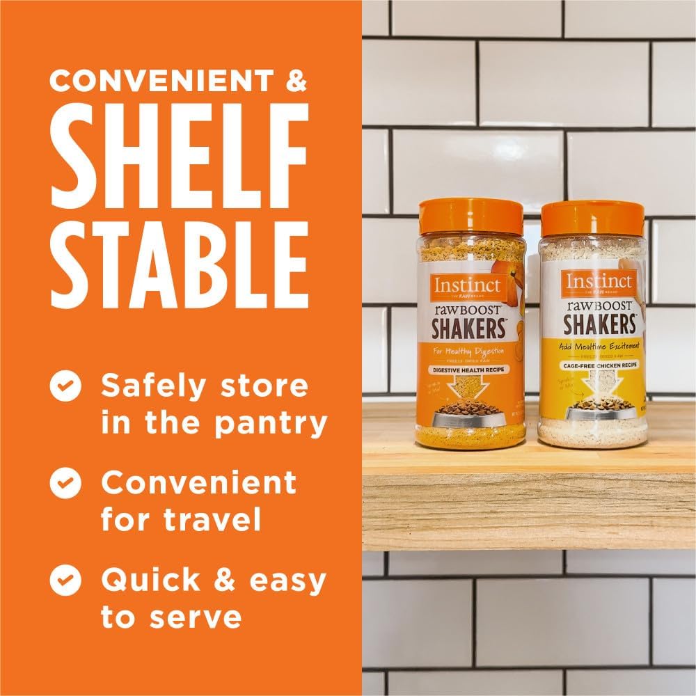 - FREEZE-DRIED RAW CAT FOOD TOPPER: Instinct Raw Boost Shakers Cage-Free Chicken Recipe lets you easily add raw to every bite. Made with cage-free chicken, chicken liver, and non-GMO fruits and vegetables.
