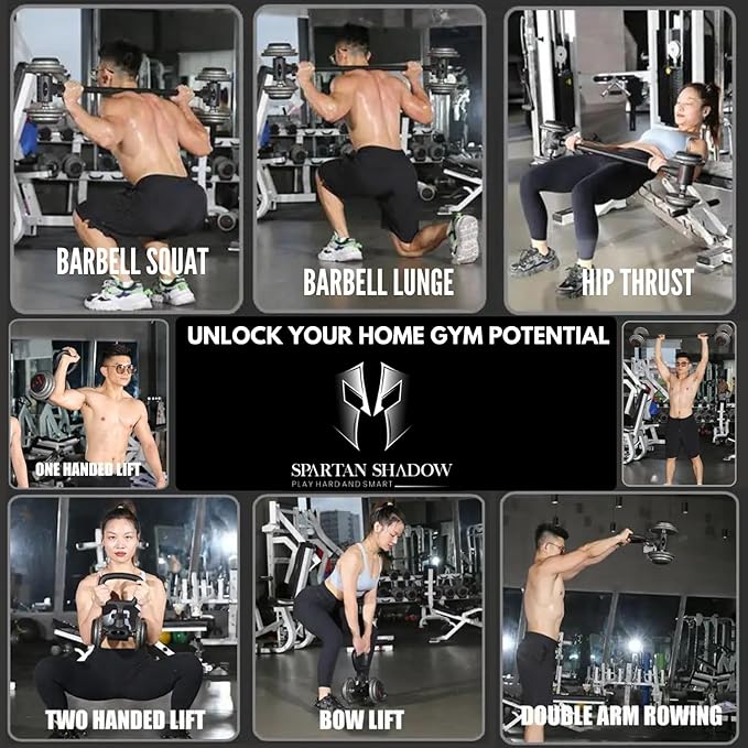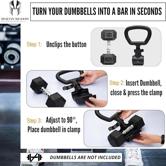 - ✅ EXPAND YOUR FITNESS HORIZONS: VARIETY OF EXERCISES Dumbbell converter bar & Kettlebell grip for dumbbell: Explore a myriad of exercises: Game changer for your Hip thrust, bench press, kettlebell swings, deadlifts, squats, lunges, curls, rows, clean and jerk, military press, all with one versatile fitness tool. Unleash the full potential of your workouts with the Spartan Shadow Dumbell Converter Bundle, transforming your home fitness space into a hub of endless exercise possibilities. Work and Shape your whole body: glutes, legs, arms, thighs, pectorals, back, abs…
