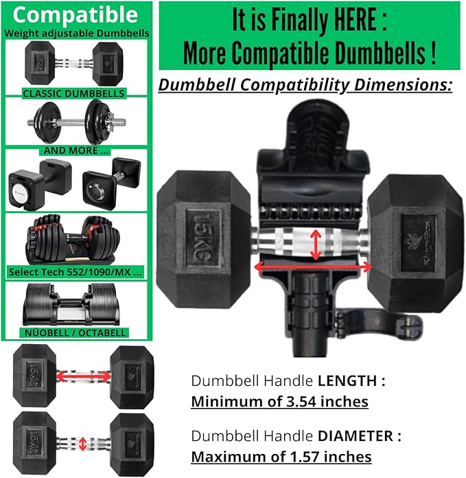 - 🎯 COMPATIBLE With STANDARD SIZE Dumbbells. New Universal patent design. More dumbbells than before! Compatibility: dumbbells handle diameter is between 1" to 1.57" and handle length more than 3.54 inch. Compatible with Leading Brands: Embrace seamless integration with various dumbbell brands, including rubber dumbbells, Bowflex dumbbells: bowflex selecttech 552 dumbbells, 1090, MX and more. This converter effortlessly blends with your existing home gym setup, opening up a world of workout possibilities with reliable equipment. Invest in the ultimate home gym solution that adapts to your fitness preferences and goals, delivering unmatched versatility and convenience.