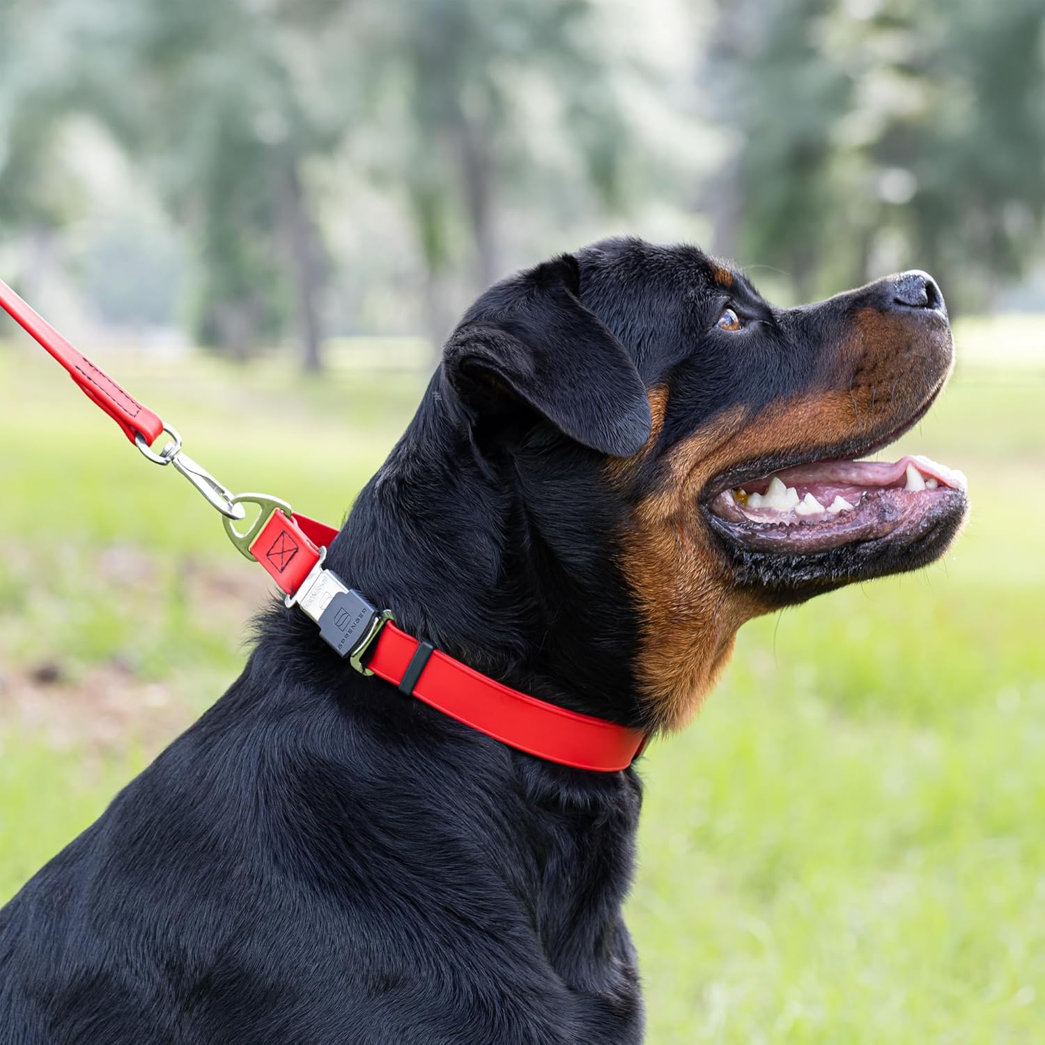 Dogline Biothane Waterproof Dog Collar with Herm Sprenger Black Stainless Steel Quick Release Buckle – Heavy Duty Tactical Durable Collar for Dogs – Comfortable and Safe Pet Collar W 3/4" L 12-19" Red