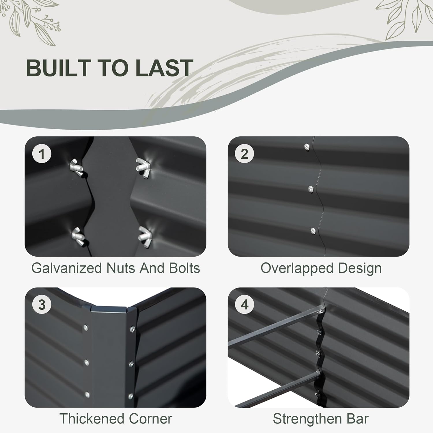 Domi Raised Garden Beds Outdoor, 8x4x1.5Ft Thickening Tall Metal Rectangular Deep Root Box Planter for Vegetables, Flowers, Herbs, and Succulents 1.5" Deep w/ 342 Gallon Capacity - Dark Gray