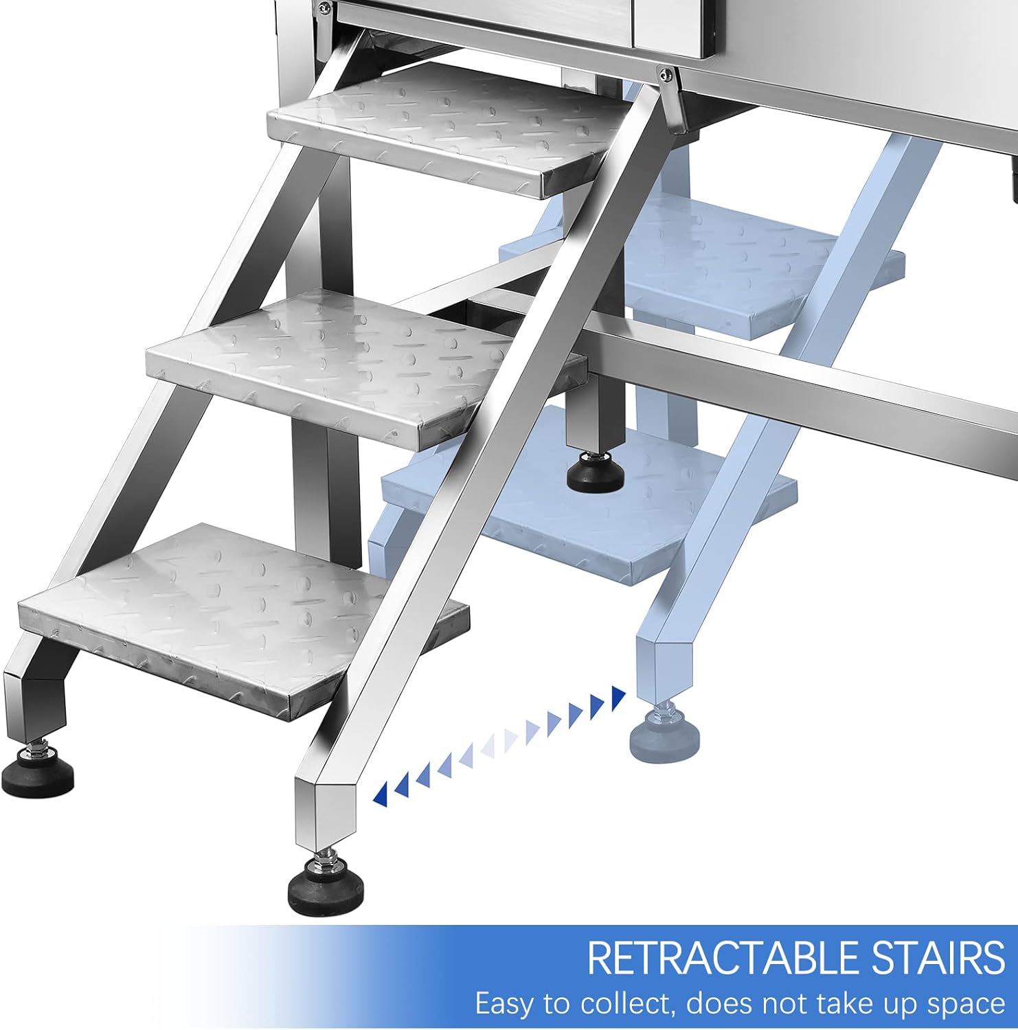 - Upgraded Designs - Sliding door and detachable stairs in this dog bathing tub. Door of dog grooming bathing tub is easy to open and securely locks closed to keep water inside the tub. Dog bathing tubs is with movable floor plate, suitable for various pets, could be adjusted to higher and lower levels to accommodate for dogs in small, medium dogs