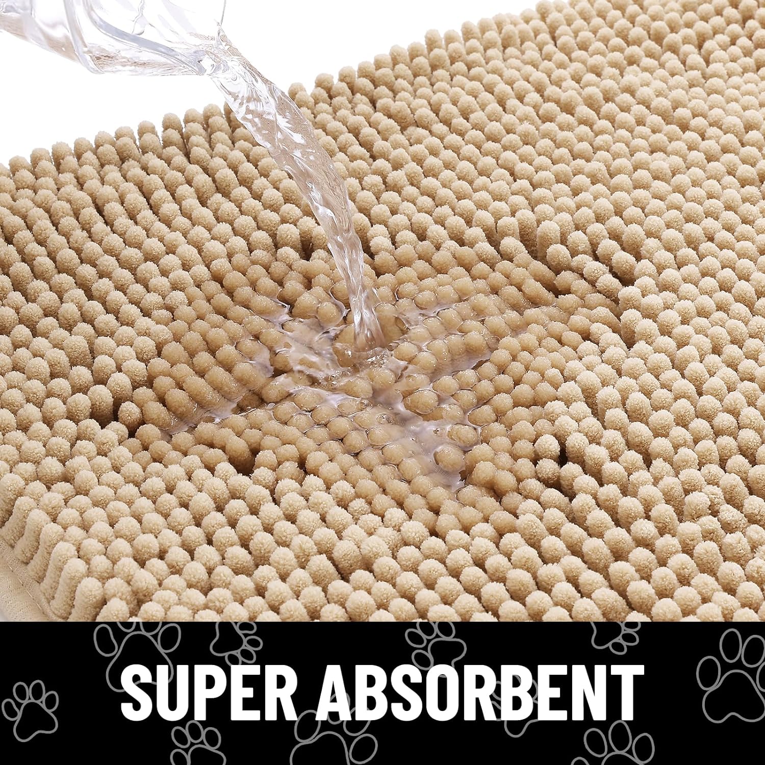 Smiry Dog Door Mat for Muddy Paws, Absorbent Dirt Trapper Non Slip Quick Dry Washable Chenille Mat for Mud Dogs, Entry Rug for Indoor and Outdoor (40x32 Inches, Beige)