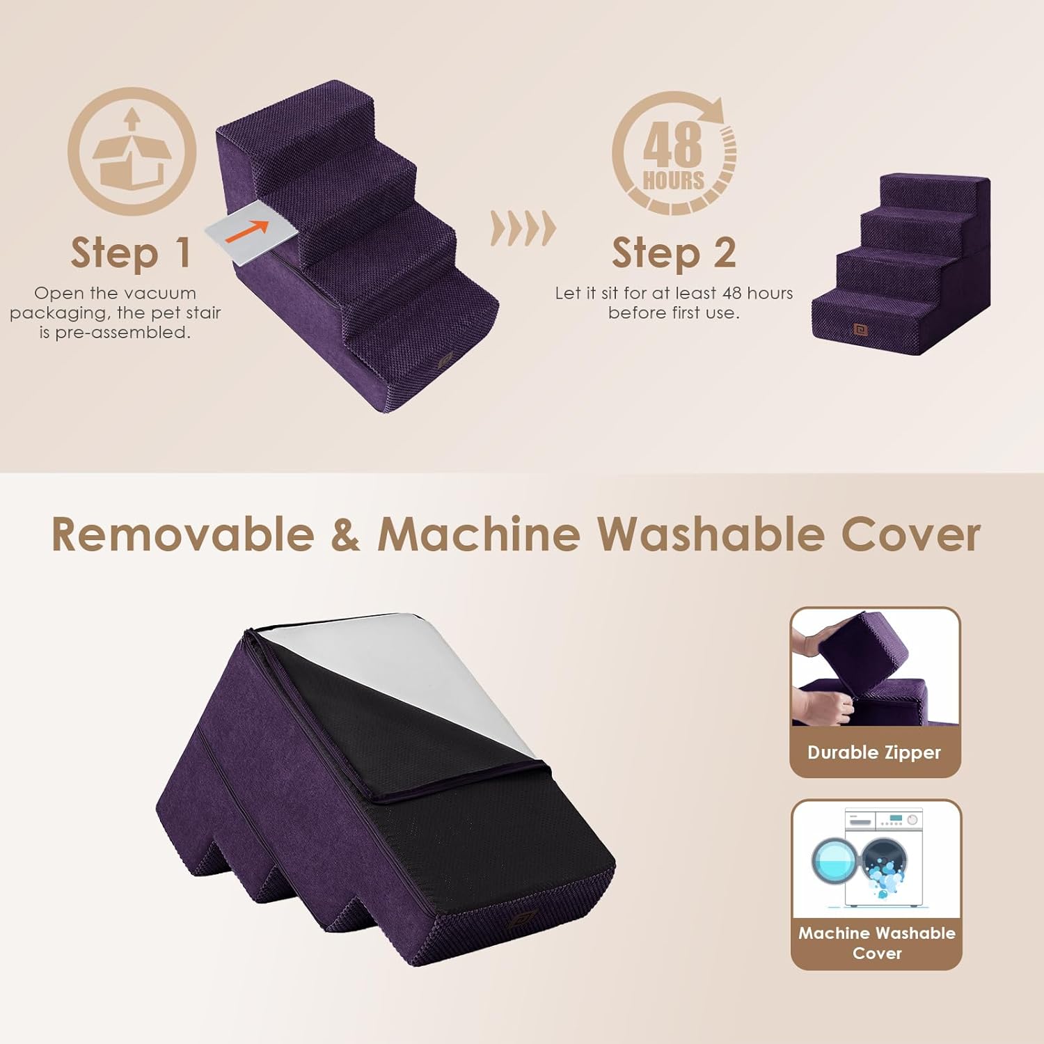 - EASY TO CLEAN - The dog step features a removable and washable cover, which can be cleaned by hand or in the washing machine. This saves you time and makes cleaning incredibly convenient.