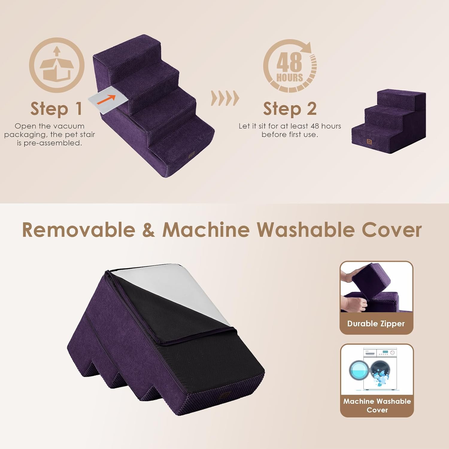 EHEYCIGA Dog Stairs for Small Dogs 13.5" H, 3-Step Dog Steps for Couch Sofa and Chair, Pet Steps for Medium Cats, Non-Slip Balanced Pet Ramp Indoor, Purple