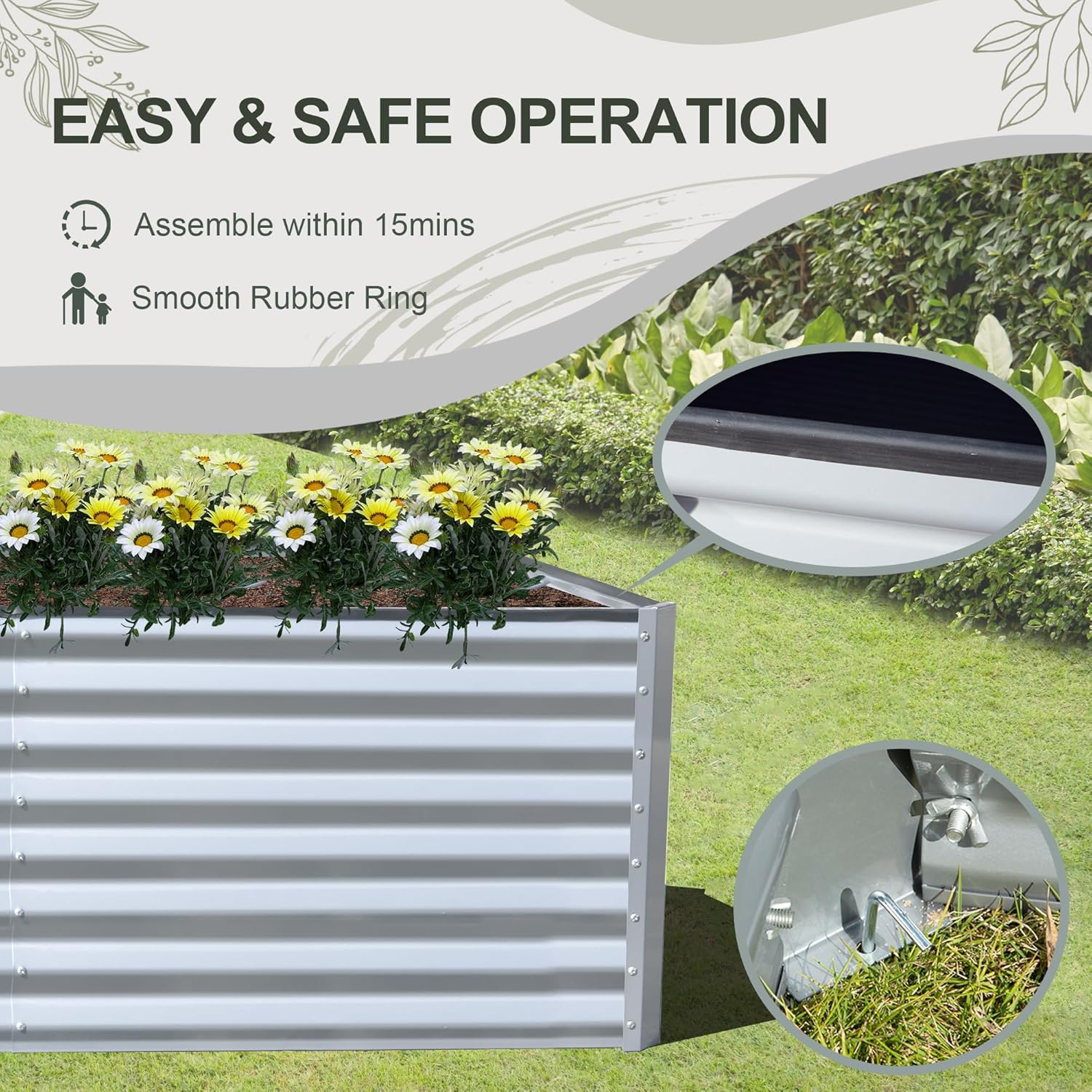 - Tool-free and Safer Installation: Fast installation in 15 minutes, stable and durable. Our raised garden bed has heavy-duty rubber edging to cover the edges protecting from injury.