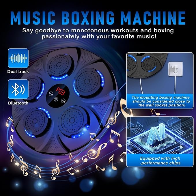 - ✔️【Multiple Mode Selection】- maquina de boxeo musical pared exercise machine can be offered in 9 different modes, each of which will correspond to a different speed. This makes the music boxing machine for adults, kids. And the high-quality material protects your hands from injury.