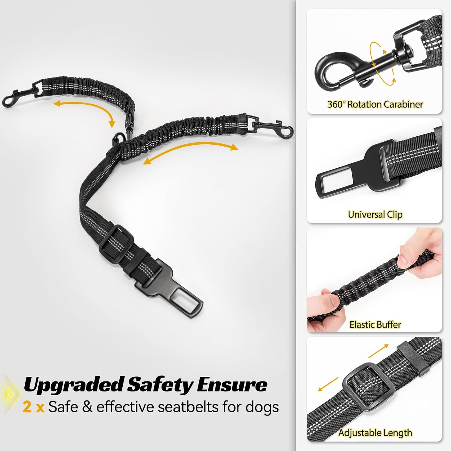 - [Upgraded Safety Rope] The dog car seat medium sized dog comes with an upgraded leash, that directly connects the pet vest to the car seat belt buckle through a special seat belt tongue. The elastic buffer design can protect your dog from sudden braking or sharp turns. Removable safety rope suitable for 1 or 2 pets.