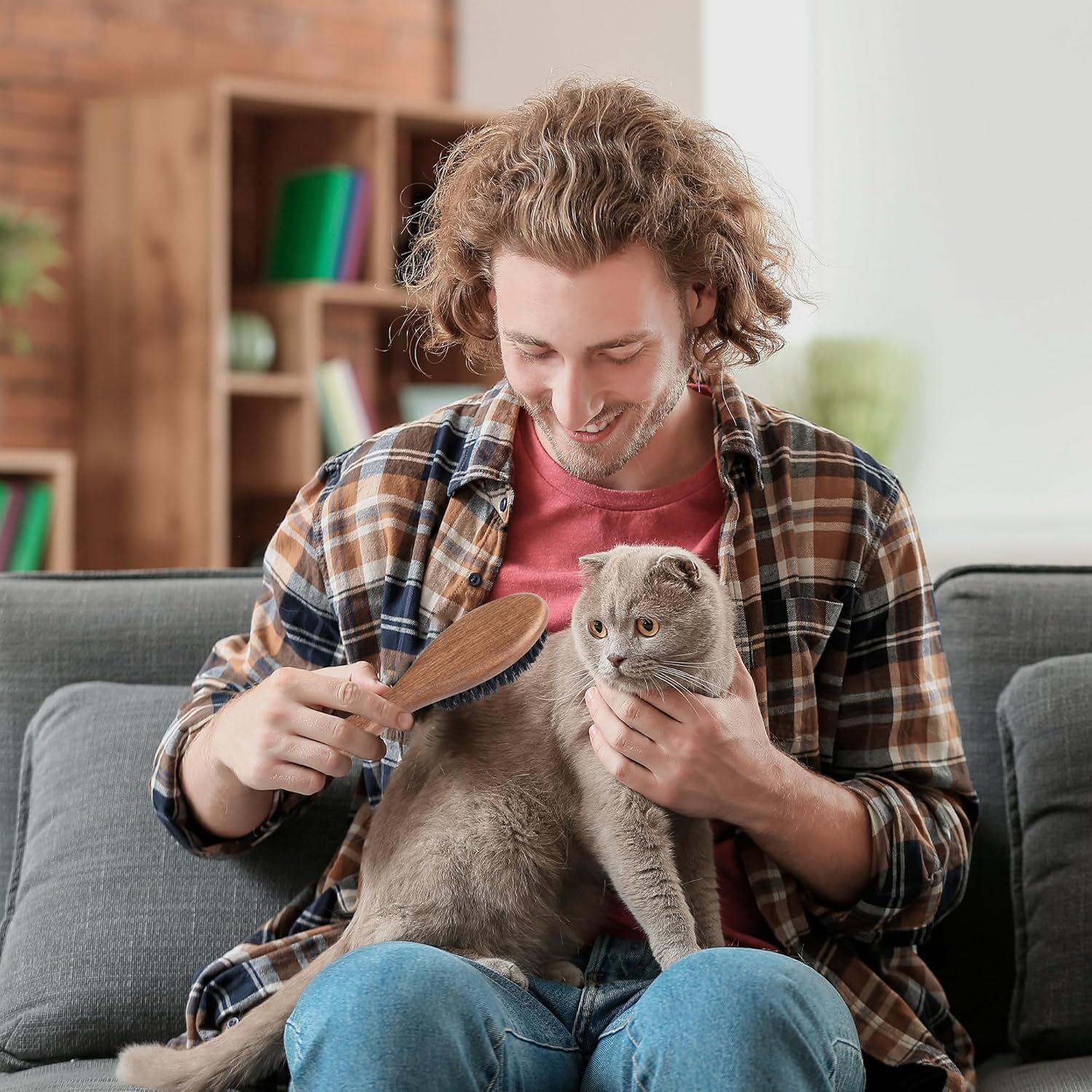 - Gentle Loose Hair Remover: Made with natural bristles and a wooden handle, this bristle pet brush provides a stable grip for comfortable handling. It is gentle enough to avoid hurting or scratching your pet. The boar bristles help prevent pulling, smooth down the topcoat, and distribute natural oils, ensuring your pet will enjoy the brushing experience from the very first use.