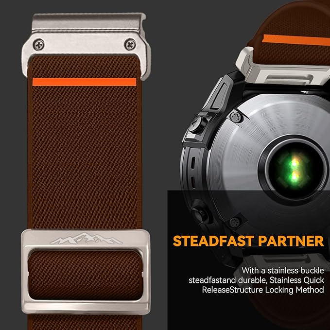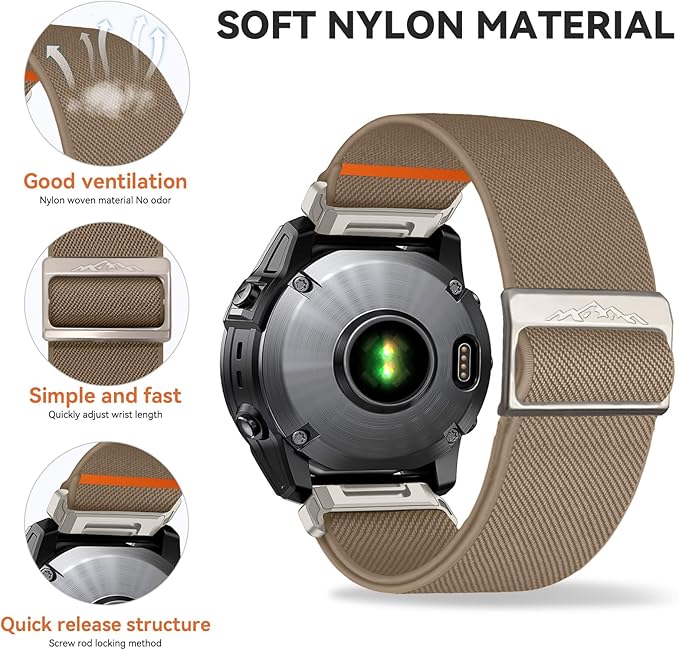- 【User-Friendly Material】Compatible with Garmin Fenix 6x/Fenix 5x/Fenix 7x bands elastic nylon braided strap is made of high quality stretchy nylon, super soft and lightweight, breathable and comfortable. This eco-friendly nylon and the sweat-absorbing property make this strap super skin-friendly.
