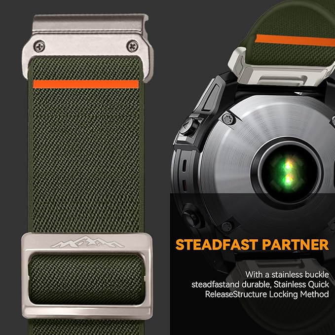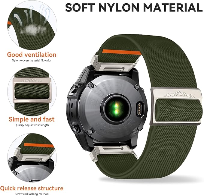 • 【User-Friendly Material】Compatible with Garmin Fenix 7/7 Pro/Fenix 6/6 Pro/Fenix 5/5 Plus Band Elastic Nylon Braided Strap is made of high quality stretchy nylon, super soft and lightweight, breathable and comfortable. This eco-friendly nylon and the sweat-absorbing property make this strap super skin-friendly.
