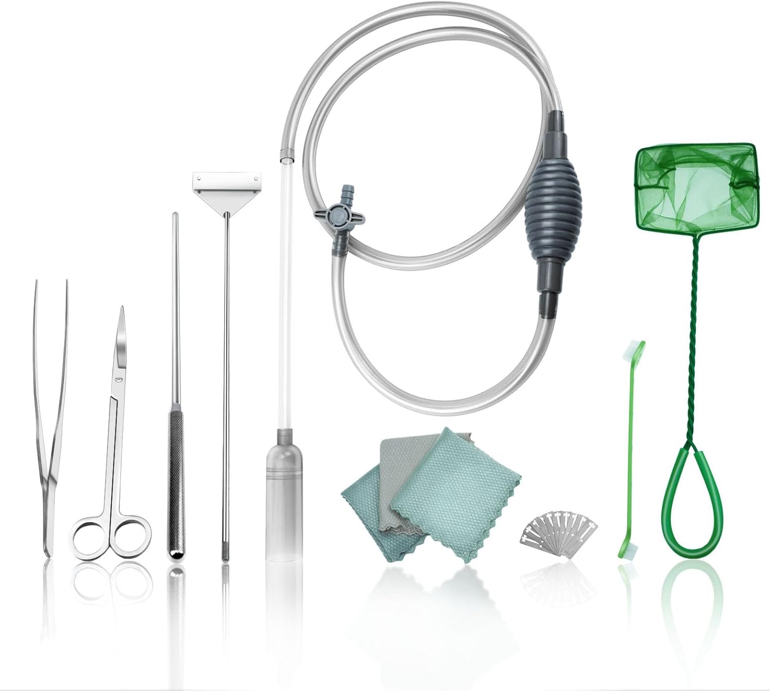 - Complete Cleaning Kit: Our aquarium siphon kit includes essential items like an aquarium vacuum gravel cleaner,aquarium algae scraper,scissors,tweezers and so on, catering to all your aquarium maintenance needs. Perfect aquarium starter kit