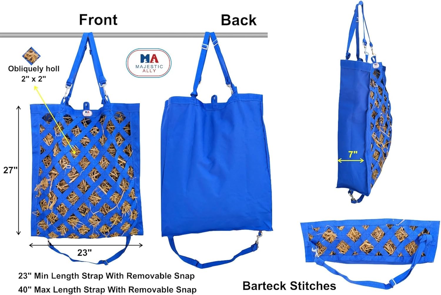 - SLOW FEEDING: Premium nylon hay bag simulates natural grazing for horses and livestock, promoting improved digestion and less wasted hay.