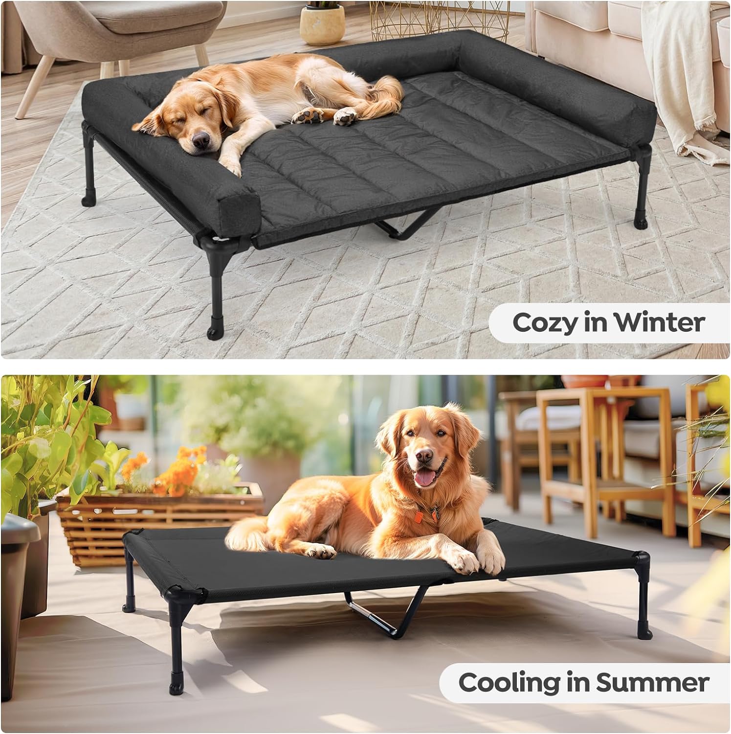 Veehoo Cooling Elevated Dog Bed Add Removable Waterproof Bolster Cushion Mat, Raised Pet Cot with Breathable Teslin Mesh, No-Slip Feet, Dog Sofa Bed for Indoor Outdoor, XLarge, Black CWC2331B