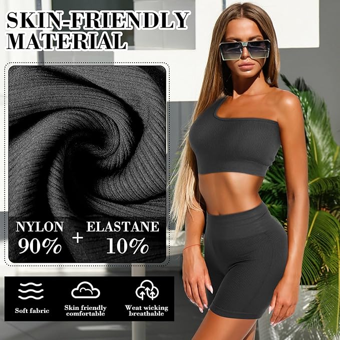 - Pilates Outfit Set: women 4 piece workout sets include 1pcs scoop neck sports bra, 1pcs one shoulder sport top, 1pcs ribbed shorts and 1pcs women leggings, stylish and practical garments designed to bring comfort and functionality to your workouts