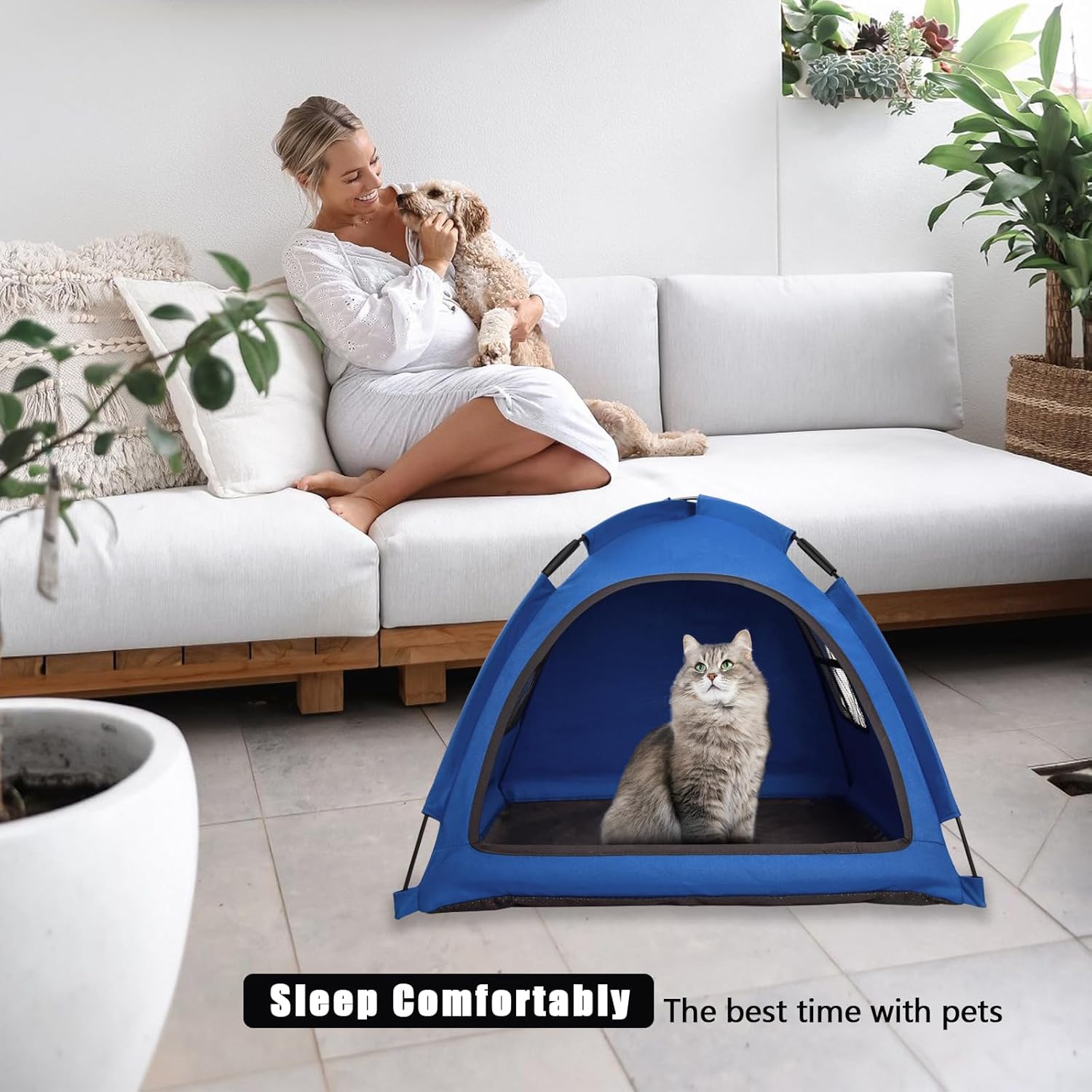Blue Cat Tent House、Cat's Nest, Portable Indoor/Outdoor Pet Tent House for Cats, Puppies and Other Small Animals