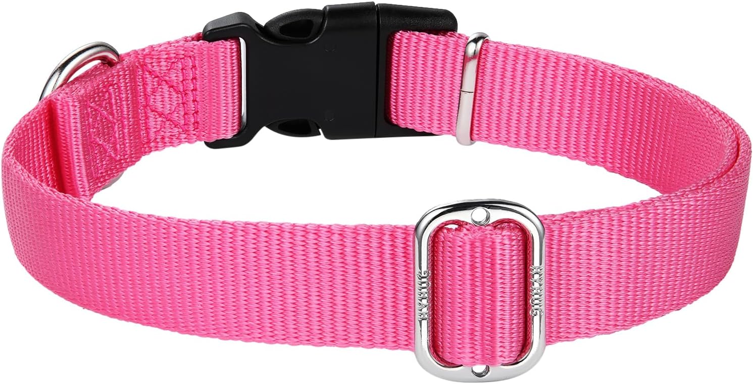 Hyhug Dog Collar with Quick Release Buckle, Nylon Adjustable Sturdy Cute Dog Collars for Large Dogs (Candy Pink, Large)