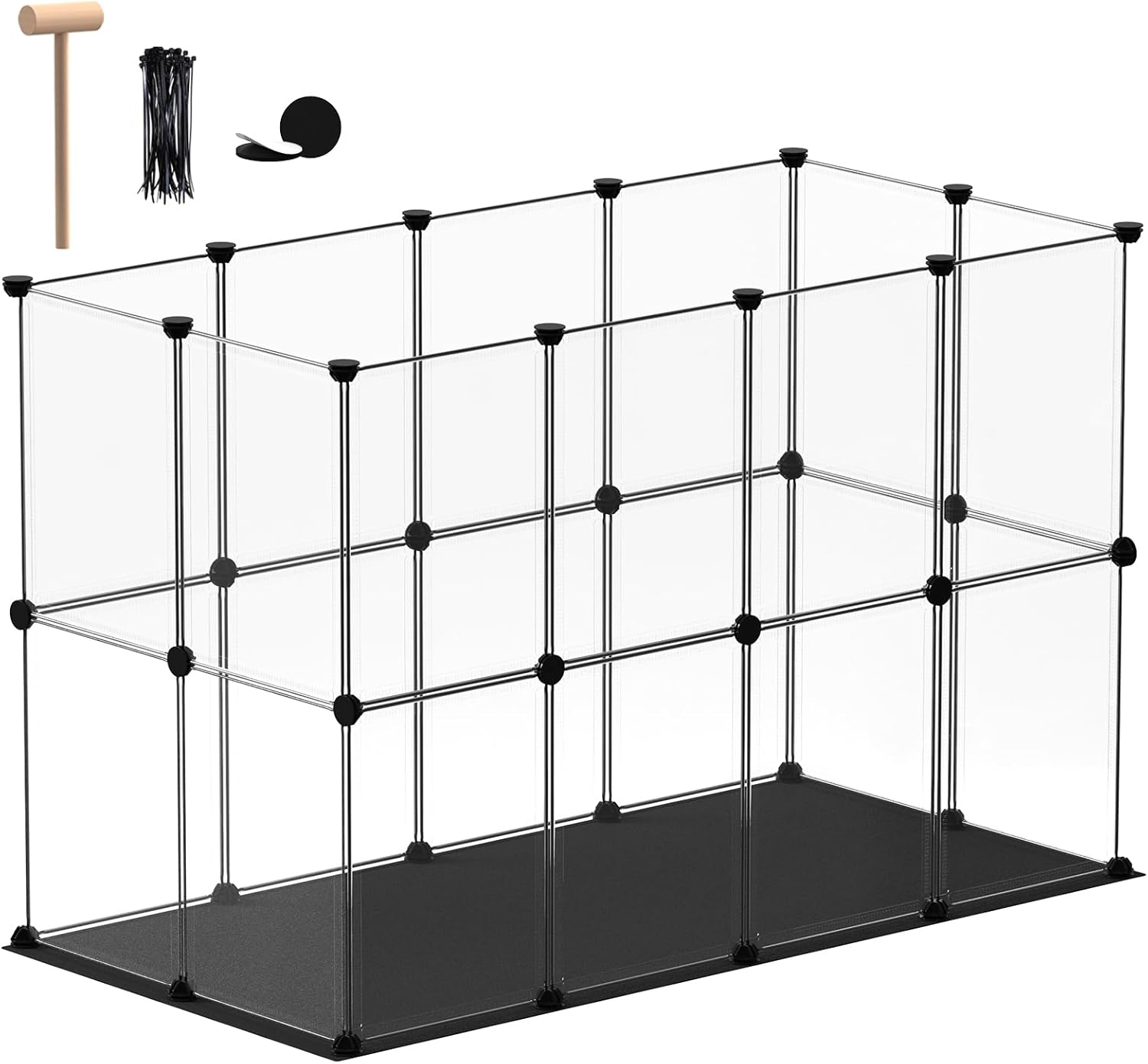 - 𝐄𝐥𝐞𝐯𝐚𝐭𝐞𝐝 𝐃𝐞𝐬𝐢𝐠𝐧: This plastic pet fence is designed specifically for your small pets. Offering them a large, stable area to rest, exercise, and play. It's perfect for your guinea pigs, hedgehogs, hamsters, ferrets, bunnies. The assembled dimensions are: 48.5 x 24.8 x 32.3 inches.