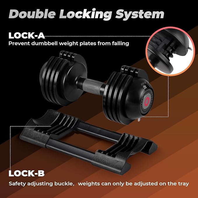 - 【Enhanced Safety Features】Prioritize safety during workouts with Roinoim Adjustable Dumbbells featuring a special locking mechanism. Eight secure locking notches firmly hold the dumbbell plates onto the handles, providing stability and peace of mind.