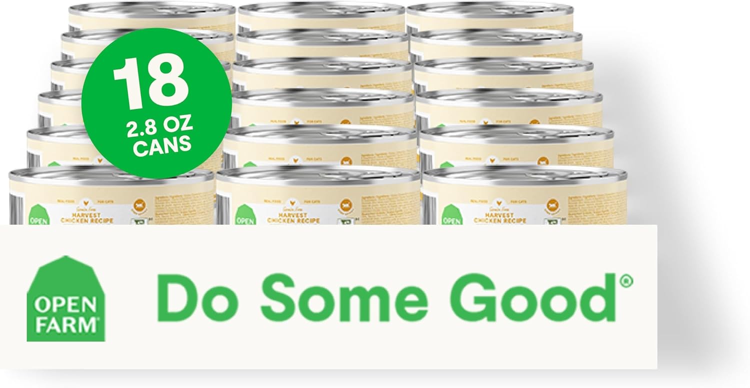 Open Farm Canned Cat Food, Paté for Complete & Balanced Nutrition, Grain-Free and Legume-Free Wet Cat Food, Harvest Chicken Recipe, 2.8oz Cans (Case of 18)