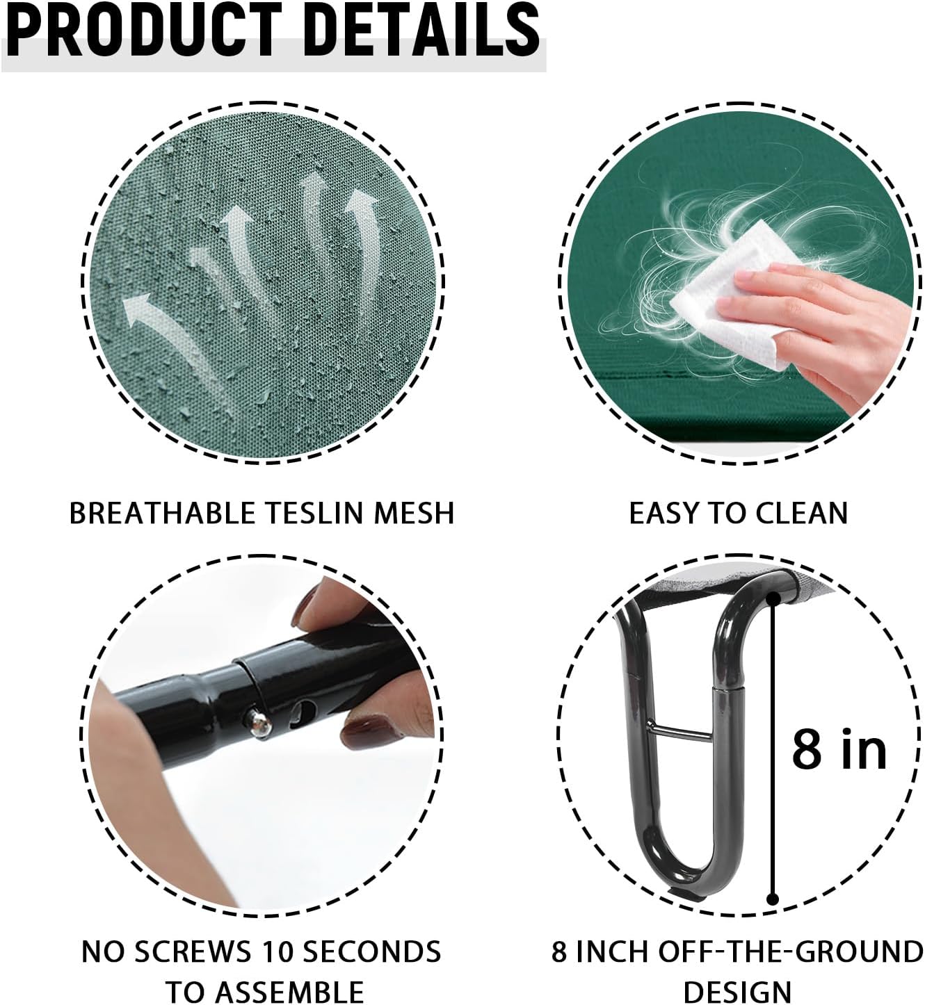 Pettycare Elevated Outdoor Dog Bed - Small Dog Cot, Waterproof, Cooling with Teslin Mesh, Non Slip, Up to 35 lbs, Green