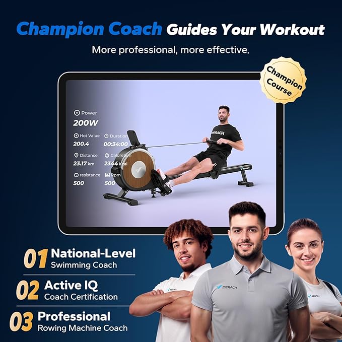 - FREE MERACH APP: Our exclusive app offers you a variety of free trainer-led exercise classes, scenic rowing modes, and personalize your fitness program. Track your workout progress with live metrics. Designed to help you reach your goals. (Also KINOMAP Compatible)