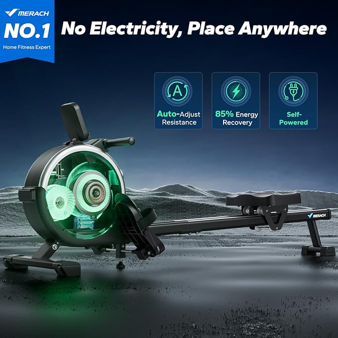 - Smart Electronic Control: Precisely manage 16 levels of electromagnetic resistance with a simple twist. Pull to start, and enjoy automatic resistance adjustment via the MERACH app, freeing your hands for an uninterrupted workout.