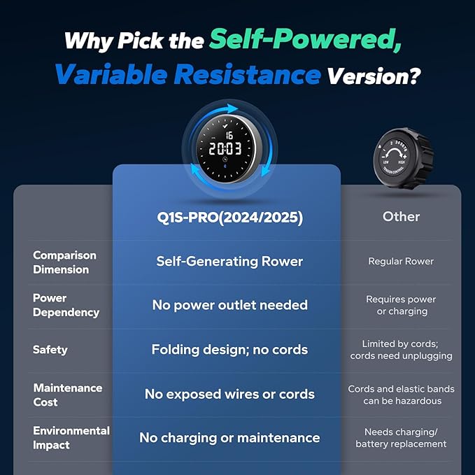 - Upgraded Electromagnetic Flywheel 2.0: Self-powered flywheel delivers stable and ample power during workouts. Enjoy smoother and more consistent resistance feedback. Use it anywhere—garden, garage, or balcony—without the hassle of power cords.